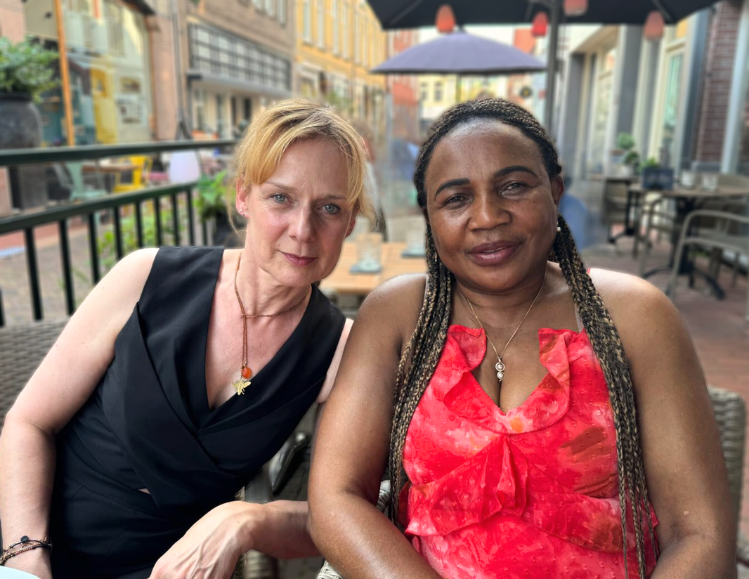 Angeline, geboren in Kameroen en al meer dan 20 jaar woonachtig in Nederland, zag met eigen ogen hoe belangrijk vruchtbare grond is voor de gemeenschappen in haar geboorteland. Met toewijding leidt zij het herbebossingsproject en werkt nauw samen met de lokale boeren om te zorgen dat elke cacaoboom en cacaoboon optimaal wordt verzorgd. Zodra de bonen klaar zijn voor transport naar Nederland, neemt Karin het over. Zij ziet erop toe dat de bonen met zorg worden verwerkt en beheert alle logistieke en kwaliteitsprocessen vanaf dat moment. Karin en Angeline blijven daarbij in nauw overleg om continuïteit en samenwerking tussen Nederland en de plantage te waarborgen.